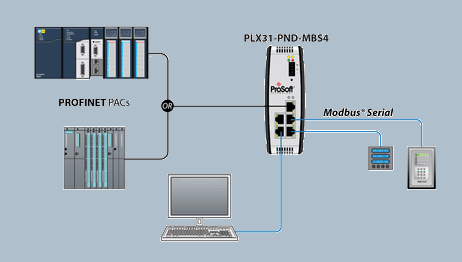 ProSoft Technology’s PROFINET® to Modbus® or Modbus® TCP gateways allow your PROFINET-based Siemens® or GE controller to connect to any Modbus or Modbus TCP-compatible device. With millions of PROFINET nodes worldwide and even more Modbus/Modbus TCP devices, the need for a gateway that will allow these two widely used protocols to communicate is self-evident. ProSoft offers four versions to give you the best solution for your application.